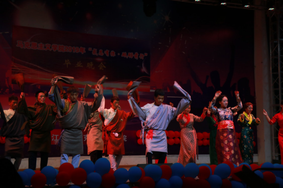表彰大会结束后,动感火热的开场舞《DALLA DALLA》点燃了毕业晚会。《我的新衣》将现代说唱与传统京剧相融合,使人耳目一新;现代舞《pick me up》、《heart shaker》清纯可爱,活力无限;民族舞《女儿会》、《锅庄风情》柔婉袅娜、质朴潇洒,赢得现场阵阵掌声;歌曲《私奔到月球》、《不为谁而作的歌》温柔甜美、娓娓动听,让人赏心悦耳;《创意T台秀》和相声《我说了算》多元创新、包袱连连,让人忍俊不禁,掌声不断。贾廷秀教授指导的暖课作品《以青春致敬马克思》也再次搬上了毕业晚会的舞台,思政2017级的同学们用话剧的形式展现了青年马克思的雄才伟志,以及他与恩格斯的深厚友谊;肖芬蓉老师的女儿班传珮小朋友也献唱了让人倍感清新流畅的民谣《卢沟谣》;思政11602班的朗诵《不说再见》,追忆了大学时光的点点滴滴,表达了他们对学长学姐的感恩与不舍;毕业班的情景剧《长大,长大,再见》压轴出场,一幕幕情景剧记录了2019届毕业生在长大、在马院难忘的青春岁月,引发了师生强烈共鸣。最后,贾廷秀等7位a片无码