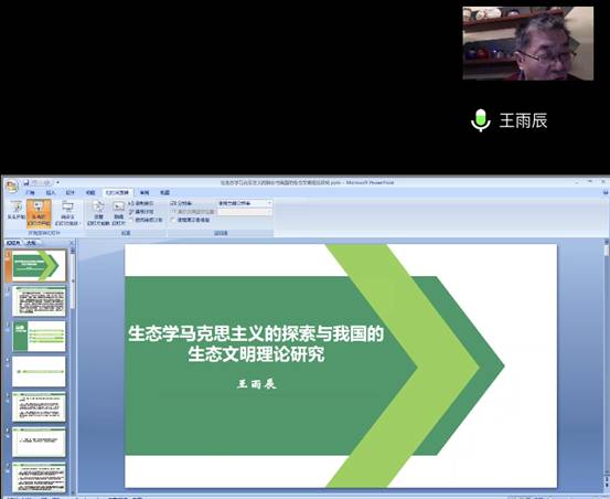 王雨辰教授从生态文明理论建构的逻辑起点是指认生态危机的根源、生态价值观和生态治理是生态文明理论的重要内容、我国学术界对生态文明理论的系统研究三个方面进行讲解。王教授认为,西方“深绿”和“浅绿”思潮的共同点是从生态价值观入手寻找生态危机的根源,但二者也有根本区别,一是西方“深绿”和“浅绿”思潮把生态危机的根源归结为抽象的生态价值观,体现为“生态中心主义价值观”和“人类中心主义价值观”之争;二是生态学马克思主义主张从社会制度和生产方式入手探讨生态危机的根源,明确指出资本主义生制度和生产方式是生态危机的根源。王教授也提到,“深绿”和“浅绿”思潮分别在坚持“生态中心主义价值观”和“人类中心主义价值观”的基础上提出了他们的生态治理论。最后,王教授指出我国学术界在21世纪初就展开对生态学马克思主义理论系统研究,立足于中国现代化实践,以实现“环境正义”为价值诉求,建构中国形态的生态文明理论,最终形成了习近平生态文明思想。