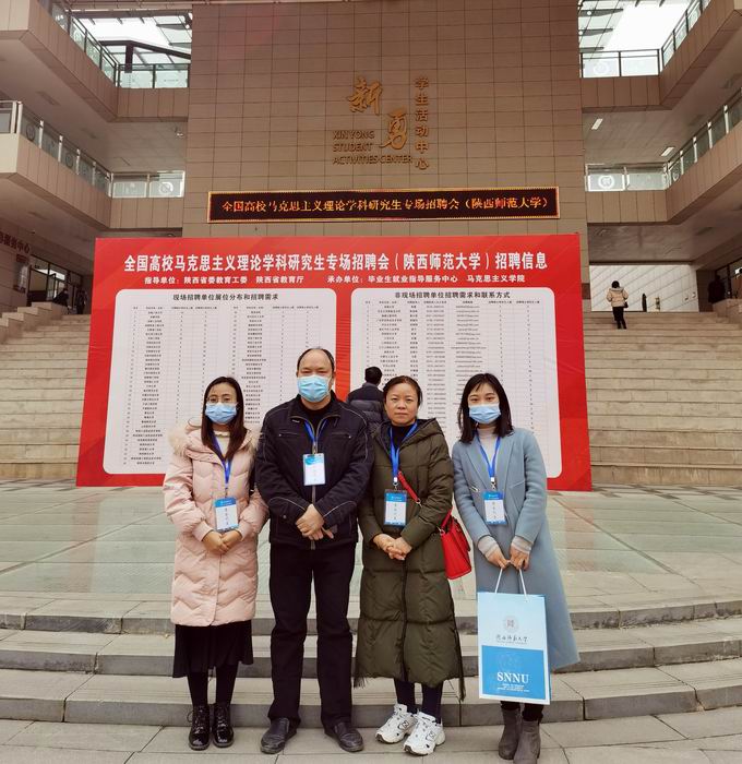 院长姜学勤、院办主任徐先荣、思政教师谭梦媛、罗小玉一行于12月28日上午驱车前往西安,参加12月29日举行的全国高校马克思主义理论学科研究生专场招聘会(陕西师范大学)。
