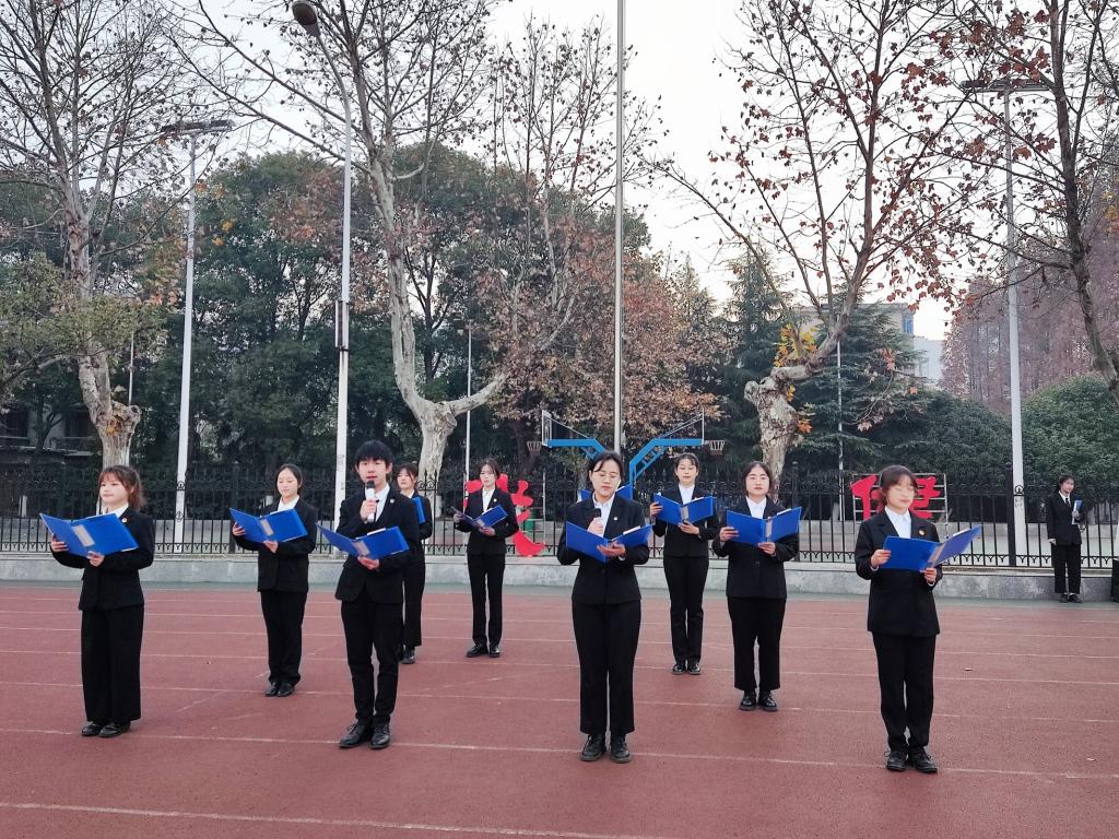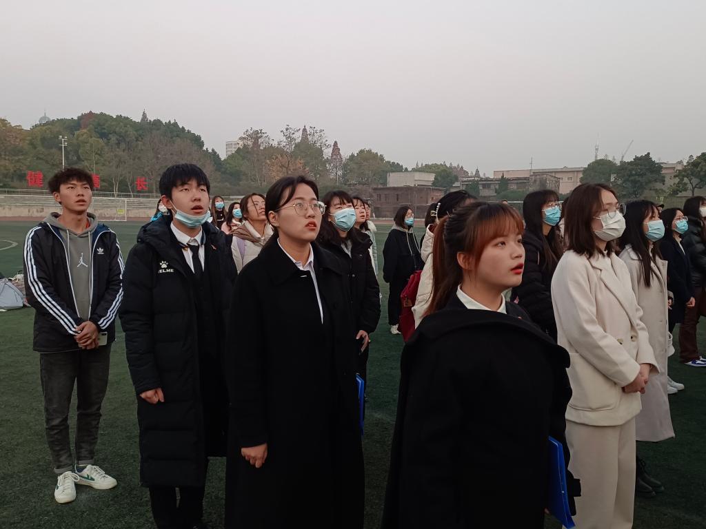 国旗在雄壮的国歌声中缓缓升起,师生们目光坚定,饱含深情。本科生代表宋宇扬同大家回顾党的辉煌路,展望新征程,并面向全体同学发出三点倡议:明确学习目标,勤学好问,积极参加活动;加强自律意识,严守校规校纪;加强班级团结与各方面交流,互帮互助。