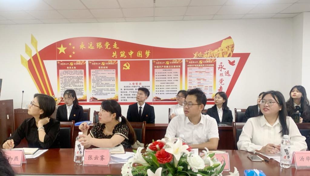 于文科楼1104室开展学院第二期青马学习小组暨第一届修远班中期汇报答辩。院党委书记刘小燕、学工办主任张云雾和班主任李敏受邀与会。学生辅导员汤举敏等五位优秀学生代表任评委,全体修远班学员到场参会,以线下线上相结合的方式进行汇报。