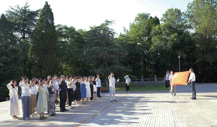 在大悟山南麓的白果树湾,老师们参观了新四军第五师司令部旧址“新四军第五师纪念馆”。在鄂豫边区革命烈士陵园,党员们怀着崇高的敬意,向革命先烈敬献花篮、整理挽联、鞠躬默哀;面向党旗,重温入党誓词。