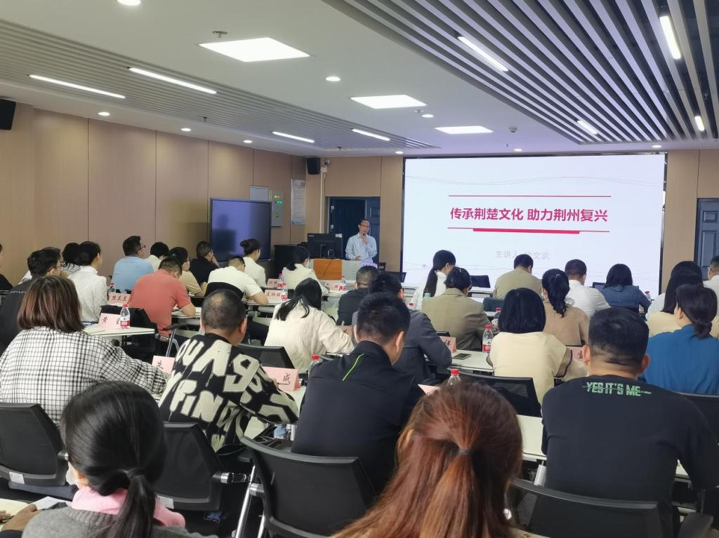 开班仪式结束后,楚文化研究院徐文武教授以《传承荆楚文化,助力荆州复兴》为主题开启了本次培训班的第一堂课,让大家在荆楚文化基因中感悟奋进力量。