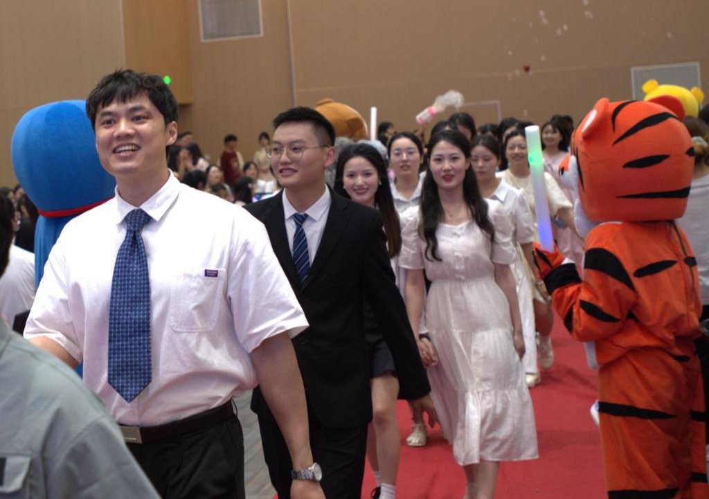 动感的音乐渲染出欢快的氛围,在鲜花、气球与相机灯中,2023届毕业生们华丽登场,自信放光芒,在师生的欢呼声与掌声中穿越红毯,为自己的大学青春做浪漫告别。学院还专门为毕业生设席,准备丰富的水果、小吃、饮料以及纯洁美丽的栀子花。毕业生们在毕业仪式中收获满满惊喜与感动。