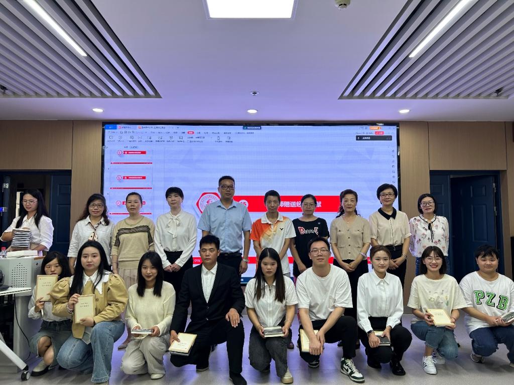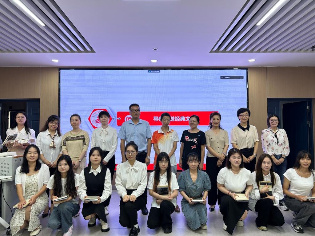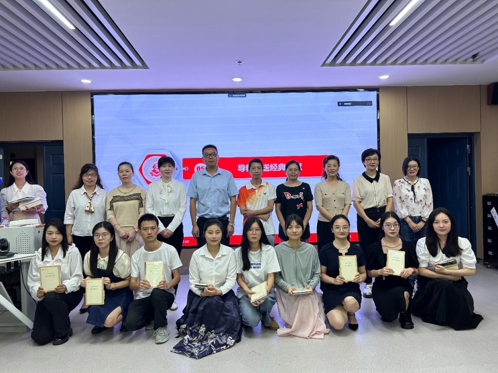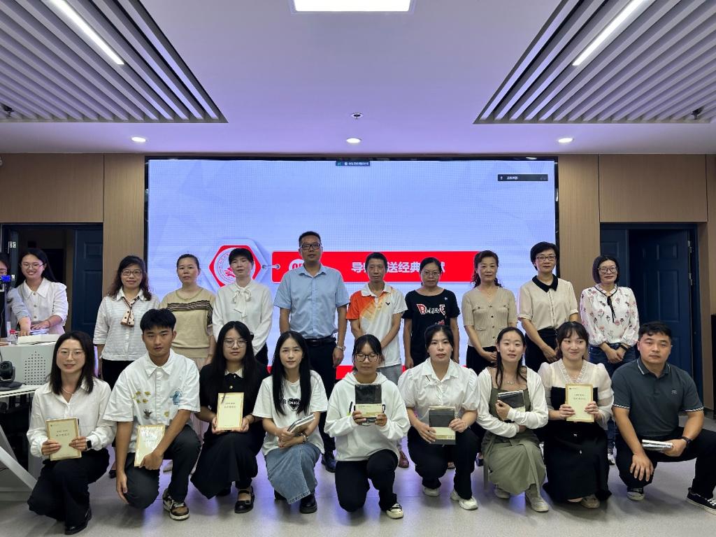 师生发言完毕后,导师团队轮流为新生发放笔记本、专业书籍,对学生暖心问候,殷殷嘱托。