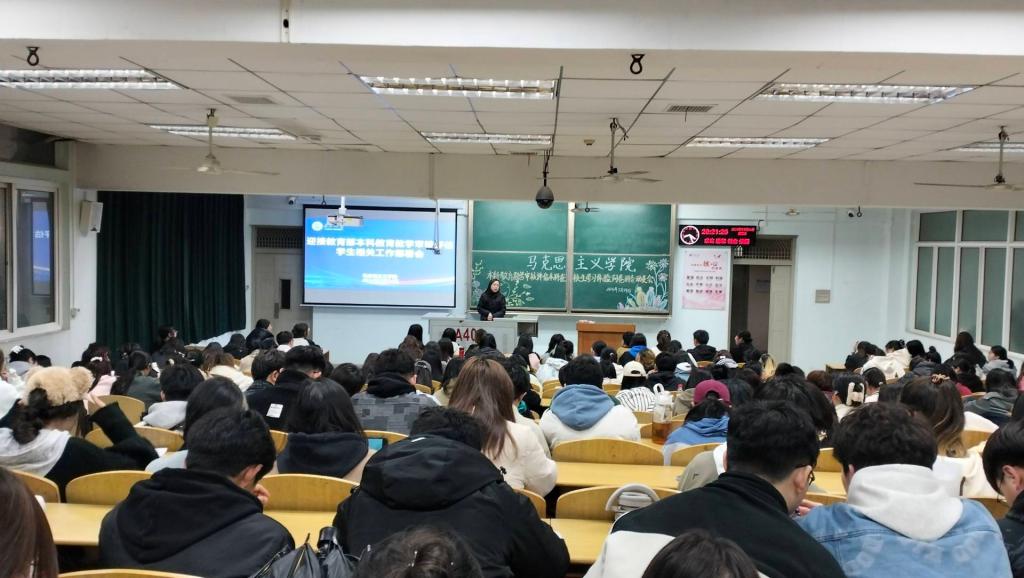 迎接教育部本科教育教学审核评估学生相关工作部署会在13教402室召开。院学工办主任张云雾老师主持会议,全体本科在校生参会。