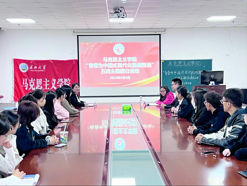 在文科楼1104室开展“青春为中国式现代化挺膺担当”五四主题团日活动。学院党委副书记汤慧珍、团委书记张云雾及部分本科学生代表参加活动。