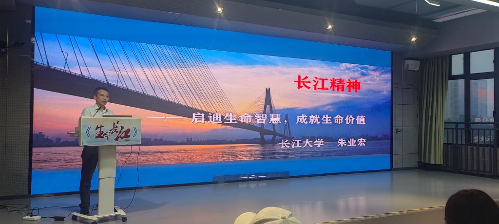 “何谓长江精神?”朱业宏老师认为长江是生命之源、文明绿洲、民族之魂,以其博大、仁爱、自新、坚韧的品质,以源远流长、厚重激越之生命长江,启迪我们生存、生活、生命之智慧。