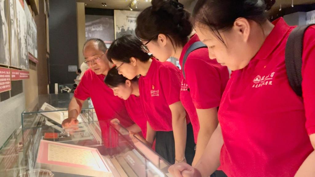 沿着百年脉络,团队成员依次参观了各个展区,马克思的亲笔手稿、“一大”会址复原景观、中共创始人之一李大钊受刑的绞刑架、开国大典上毛泽东主席穿的中山装、20世纪七八十年代的“老物件”……一件件珍贵的文物实物、一份份翔实的档案资料、一条条生动的影像视频、一个个逼真的复原场景,生动再现了中国共产党从诞生到成长、从苦难到辉煌的百年奋斗历程。团队成员时而驻足凝视,时而交流感悟,围绕展柜里的一封封书信展开研讨,共同追寻红色记忆,感受革命精神,汲取奋进力量。