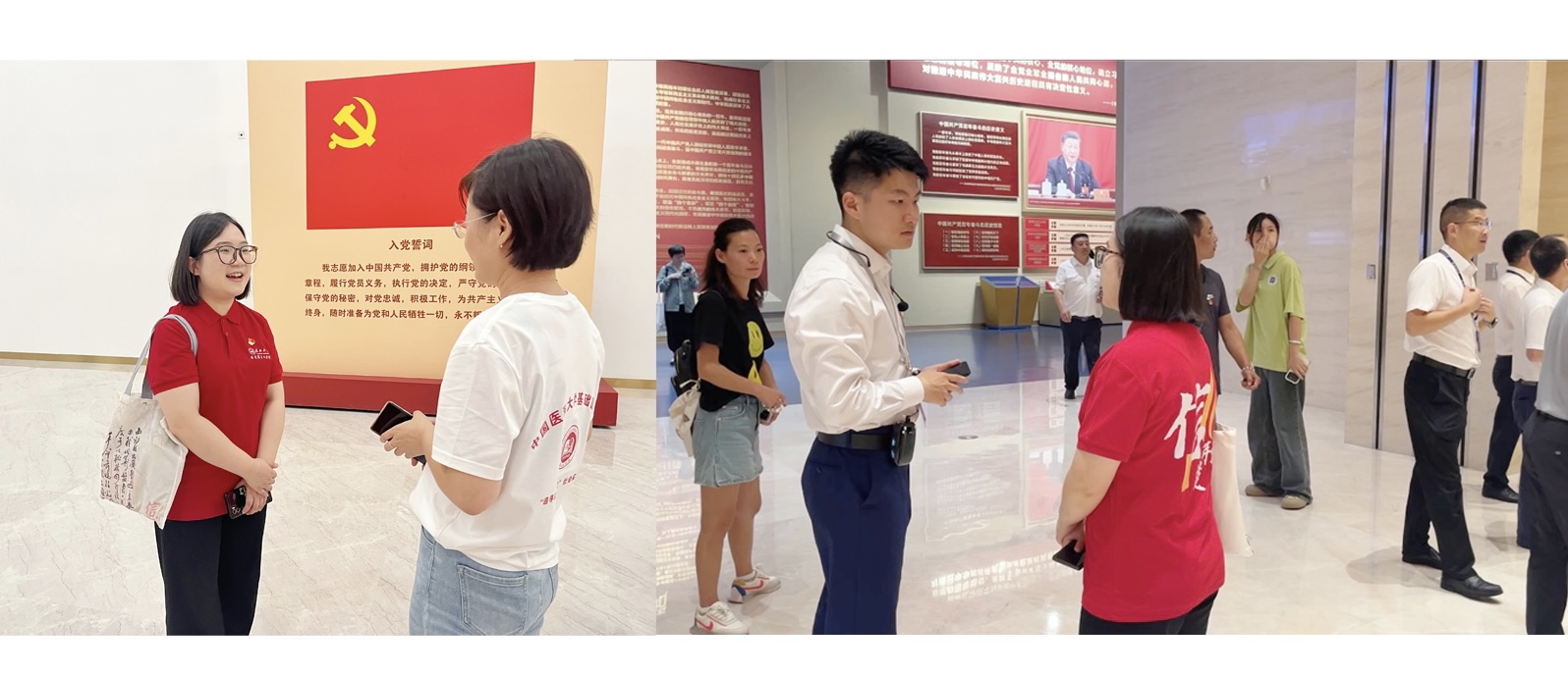 (图为团队成员与中国医科大学老师、中国共产党历史展览馆讲解员交流学习)