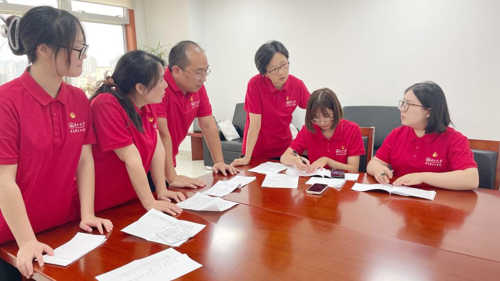 (图为“信·荆楚”暑期实践队队员就所寻得的书信展开研讨)