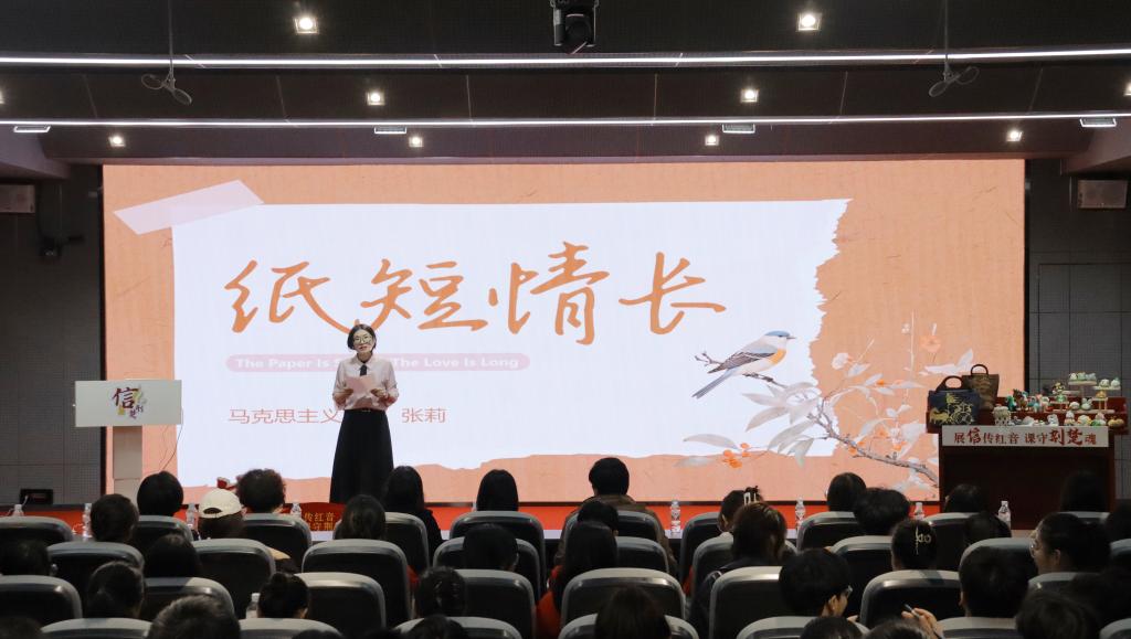 《信•荆楚》第五讲“纸短情长”由《信•荆楚》课程组教师张莉,全国最美家庭荣誉获得者、荆州市巾帼建功标兵、荆州区西城街道通会桥社区志愿者、“爱心妈妈”朱小红联袂讲授。课程将红色家书与思政教育深度融合,通过丰富多彩的教学内容和课堂形式,让奉献精神在这堂思政课上具象化。