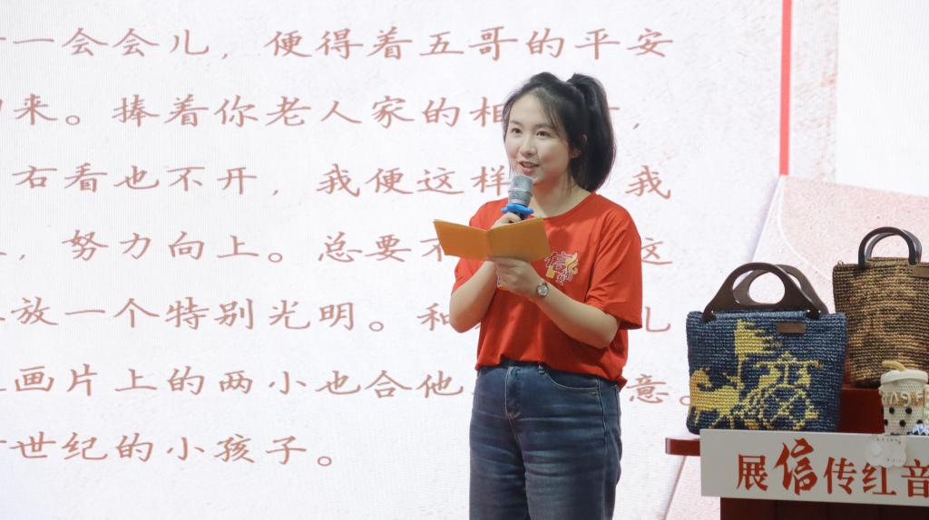 革命烈士的奉献精神令人感动落泪,红衣马甲的公益故事同样让人动容。课堂上,“爱心妈妈”朱小红用一个个信物、一张张照片、一段段视频分享了她走上公益道路,通过“编织”手艺,扎根乡村助脱贫,扶危济困献爱心,余热生辉显红心的温暖故事,号召青年学子赓续奉献精神,厚植家国情怀。