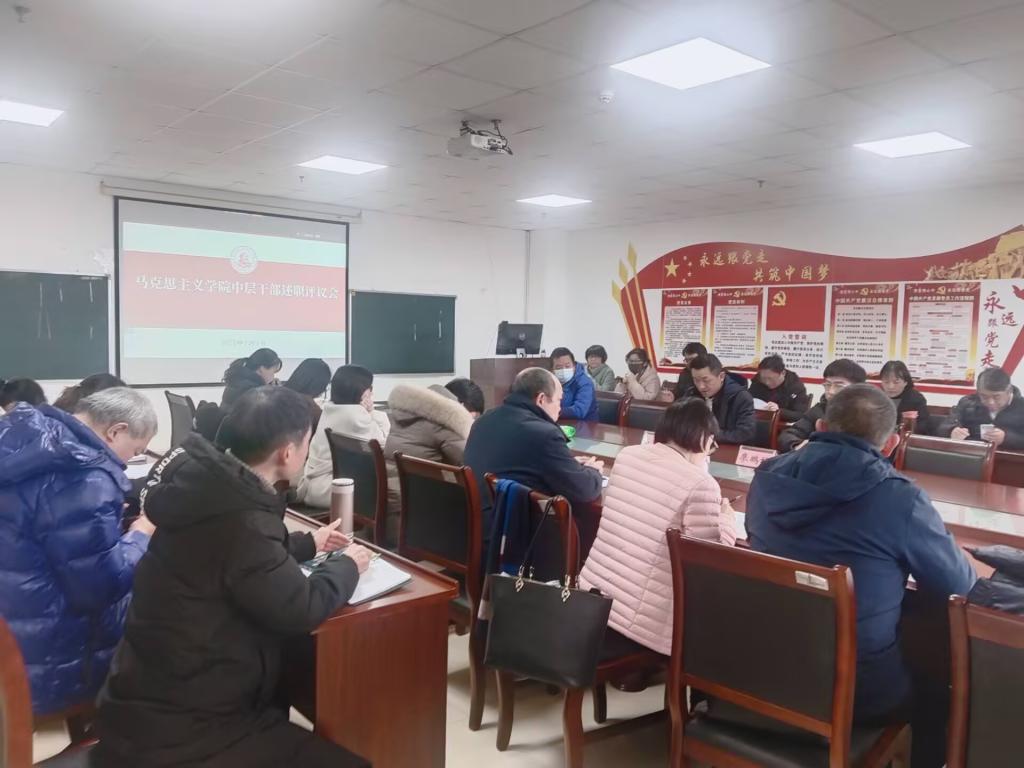 在文科楼1104室举行2024年度干部述职评议会,对中层干部、学院内设机构负责人进行考核评议。这次会议也是今年学院教代会的一部分。