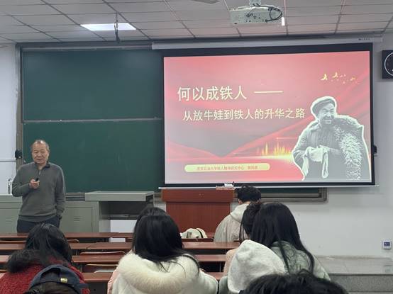 讲座尾声,郭岗彦总结道,铁人王进喜的一生告诉我们:一个人的高贵与成功,不取决于出身与地位,而取决于灵魂的厚度——包括情怀的广博、境界的高远与认知的深度。