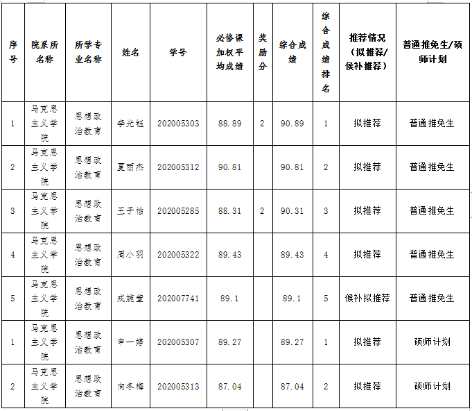 拟推荐2024届优秀本科毕业生免试攻读硕士学位研究生按照学院总名额的1.2倍人数进行公示。在公示期间,若拟推荐推免生不符合条件或放弃推免资格,由候补推荐人选依序递补。公示时间:2023年9月18日至2023年9月20日17:00。若有异议,请于公示期内向学院反映,过期将不予受理。电话:8060733。