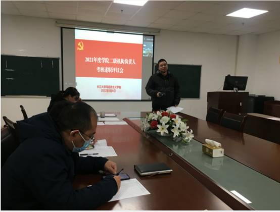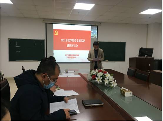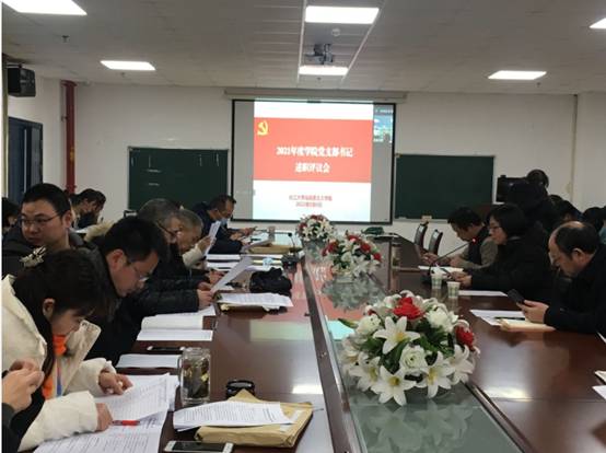 召开2021年度党支部书记述职评议会,对基层党组织书记抓党建工作进行述职评议和民主测评。学院党委委员、各支部委员、全体教工党员参加会议。