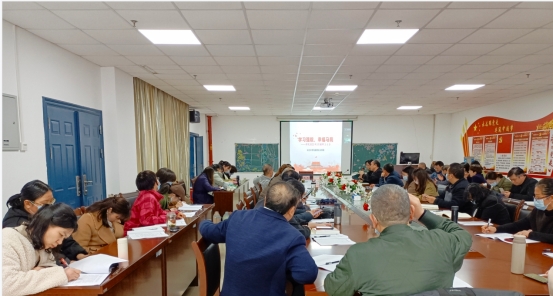 在文科楼1104室举行3月份政治理论学习活动,学院党委理论学习中心组成员、各党支部书记、在荆教职工共同参会,武汉校区同步视频参会。