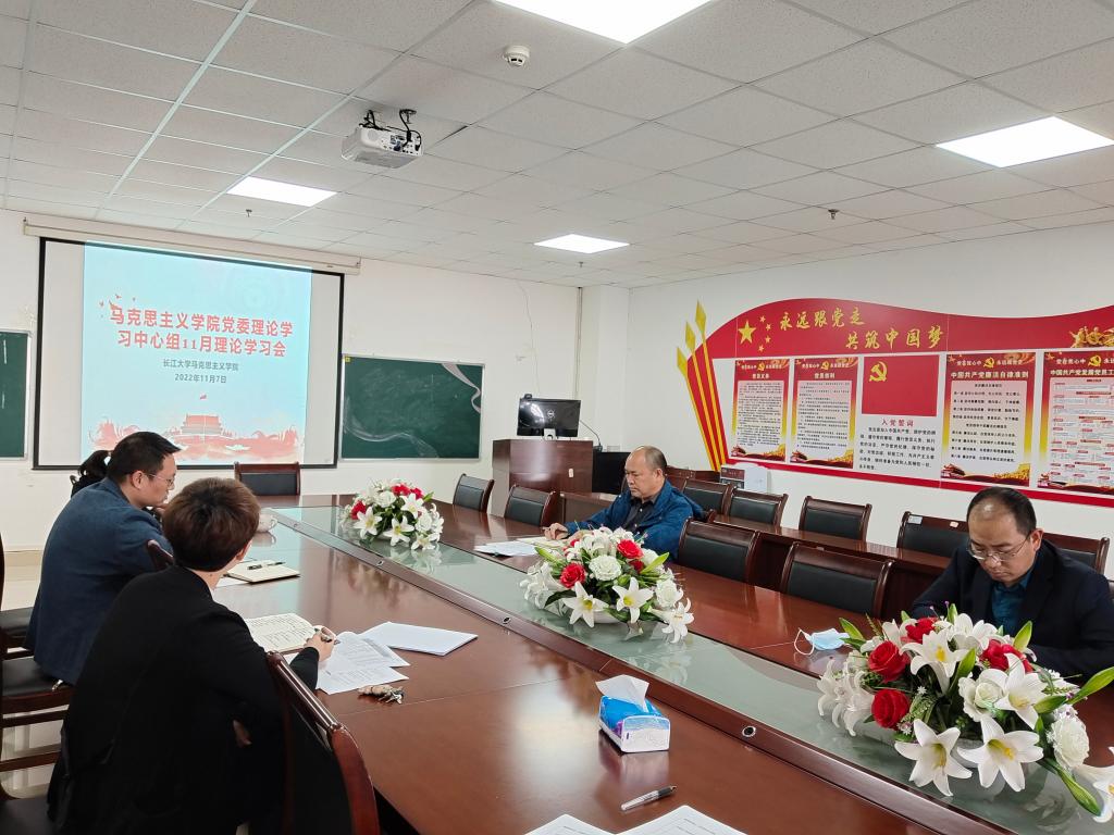 党委理论学习中心组在文科楼1104室组织11月份政治理论学习活动,会议由学院分党委副书记马小佼主持。