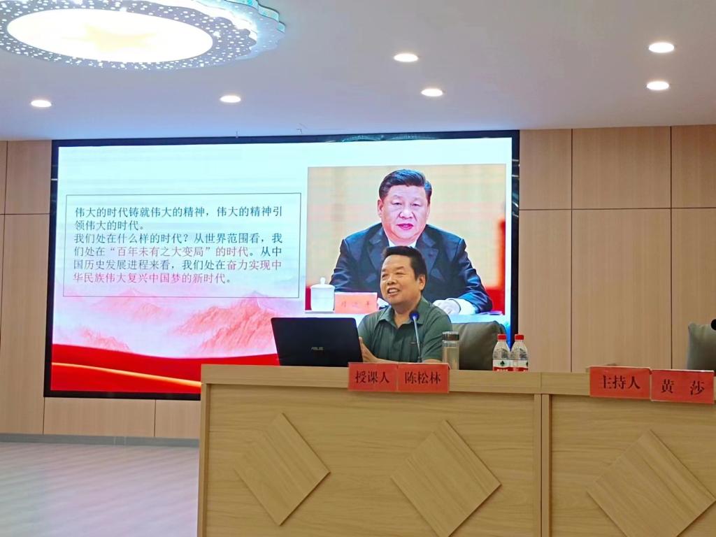 陈松林教授受邀讲授了专题党课。该镇党委政府在家班子成员、全体机关干部、村社区“两委”班子成员、镇直机关事业单位党支部班子成员、非公企业党支部书记以及部分党员代表参学,会议由镇党委副书记黄莎主持。