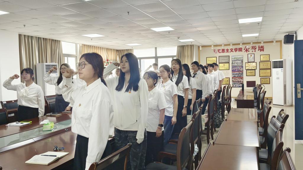 活动伊始,杨杰同志对党费交纳相关事项进行提示,于潇浚同志带领与会同志重温入党誓词,崔安欣领学《中国共产党章程》第六章相关内容。