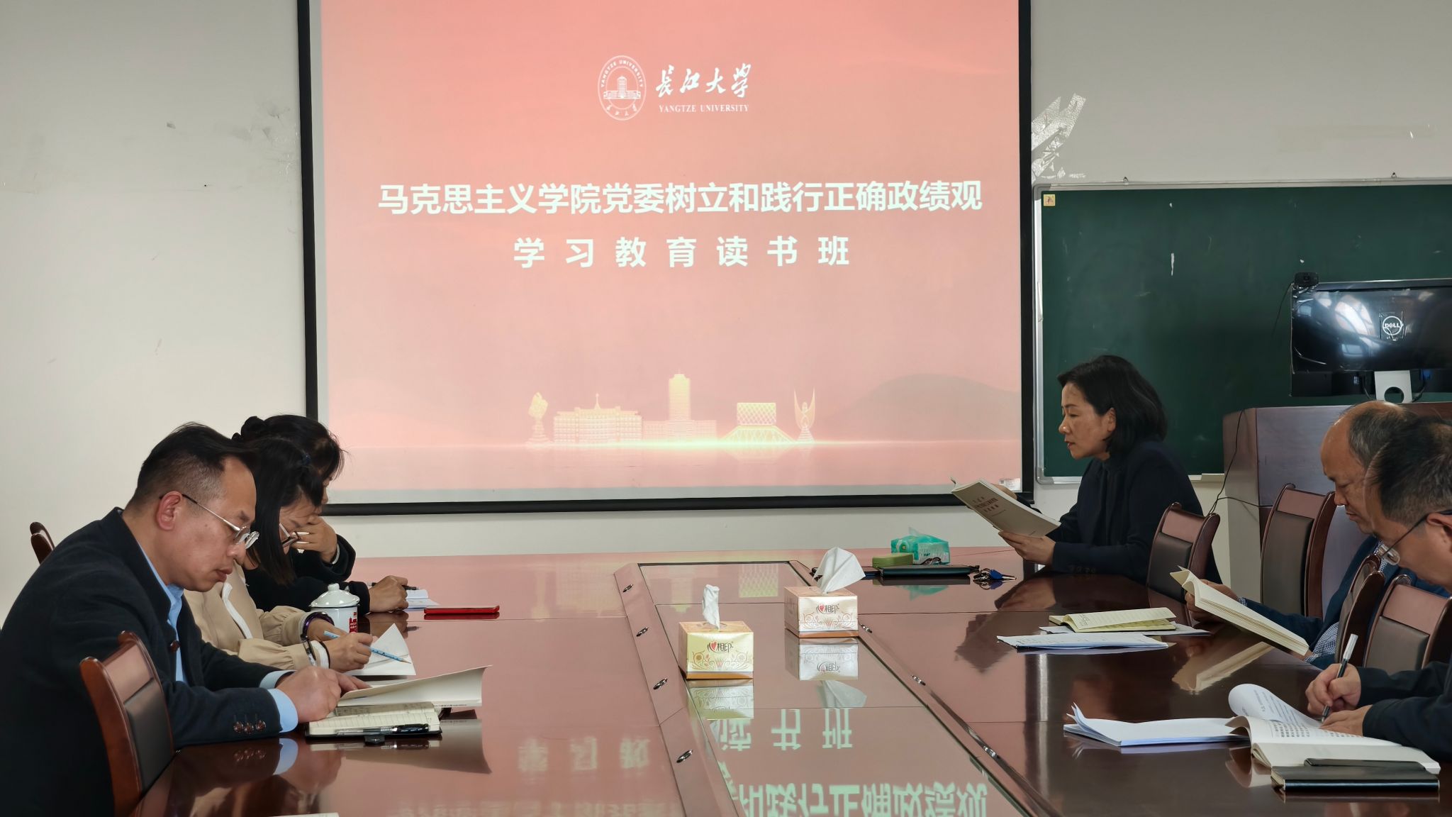 党委在文科楼1104室举办树立和践行正确政绩观学习教育专题读书班集体学习研讨。学院党委书记刘小燕主持并作读书小结,全体班子成员参会。
