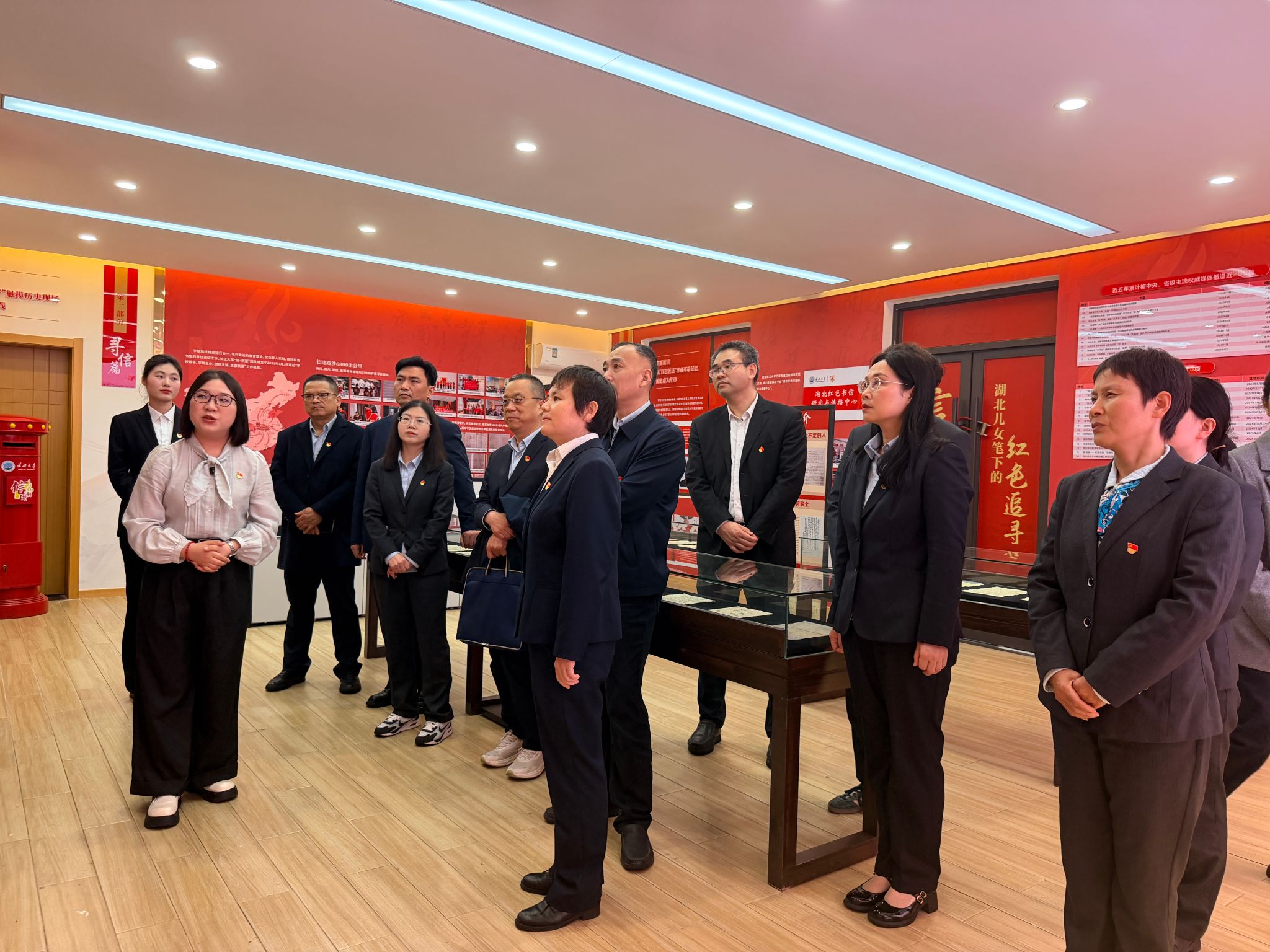 活动现场,“信·荆楚”团队学生负责人袁田以“在红色书信的保护传承和活化利用中讲好铸魂育人‘大思政课’”为题,为来访人员介绍了展馆建设情况,详细讲解了团队近五年来围绕“寻信、解信、传信”所开展的育人实践成效。