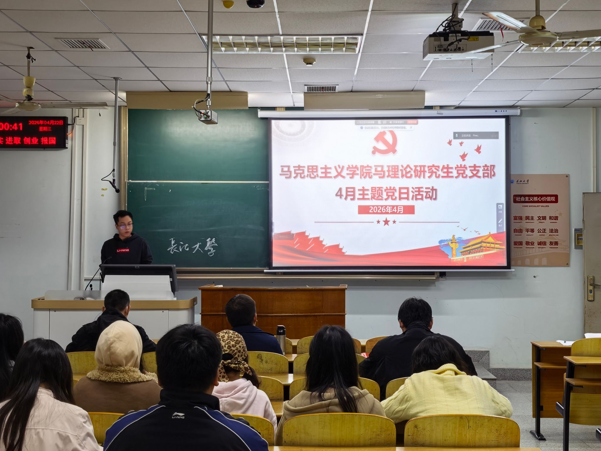 (通讯员 鲍舒雨)为深入学习贯彻党的二十届四中全会精神,扎实开展树立和践行正确政绩观学习教育,强化党员理论武装与责任担当,4月22日,马理论研究生党支部顺利开展4月支部主题党日活动。支部全体党员参加本次活动,活动严格按照规范流程有序进行。