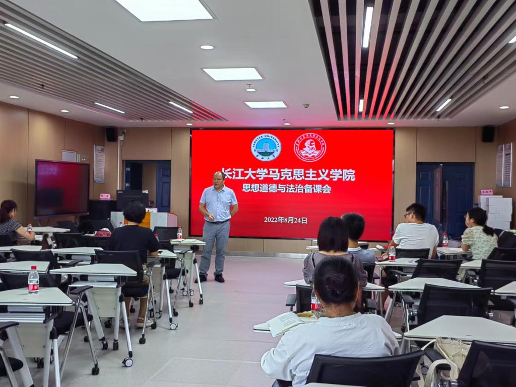 《思想道德与法治》课程组在文科楼1008室开展集体备课会。会议由课程组组长肖芬蓉主持,课程组全体教师参会。本次会议有三个主要议程:一是开展新入职教师教学展示活动;二是新学期教学安排;三是开展专题理论学习。