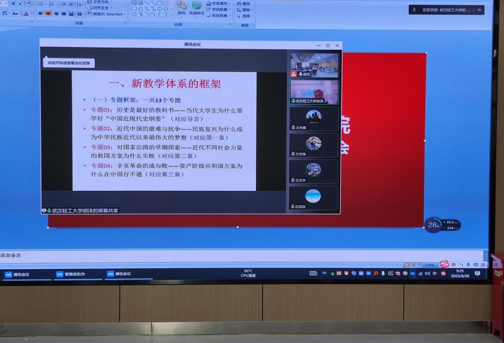 首先,胡沫教授从思政课建设发展、思政课的地位、思政课的现状三个方面说明教育部为什么这个时候要统一课件;接着,胡教授从专题框架、大纲对应节点的变化、新教学体系(新课件)的主要特点三个方面对教育部课件进行了详细解读。