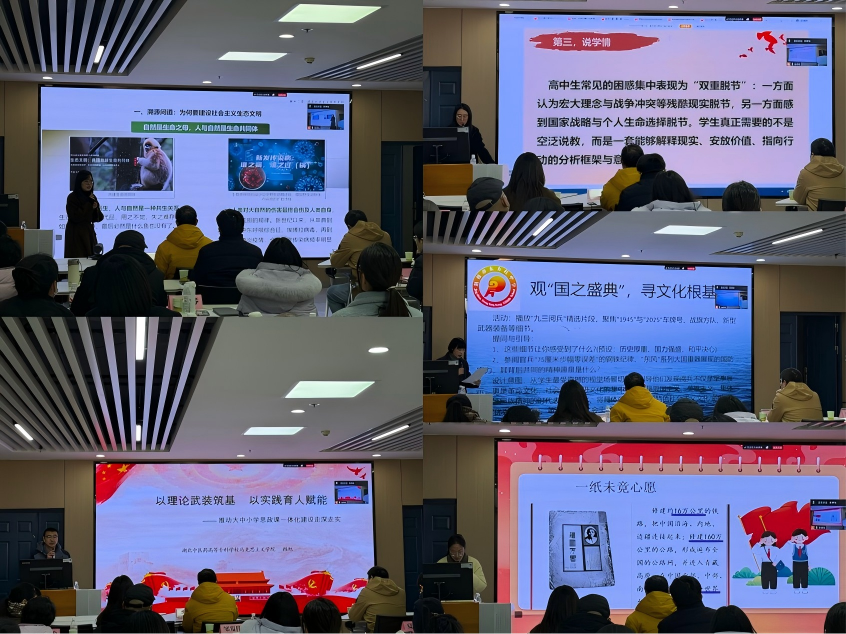主旨报告环节,省委讲师团成员、武汉理工大学马克思主义教授朱喆以“用规划锚定民族复兴伟业的新局面”为题,以党的二十届四中全会精神为核心,强化四个意识,结合大中小学思政课教学实际,作了内涵深刻、指导性强的主旨报告。报告系统解读了全会精神的核心要义与实践要求,联系“十五五”规划为中国式现代化发展承前启后,为参会教师精准把握教学方向、有效融入课堂教学提供了坚实的理论支撑和清晰的实践指引。