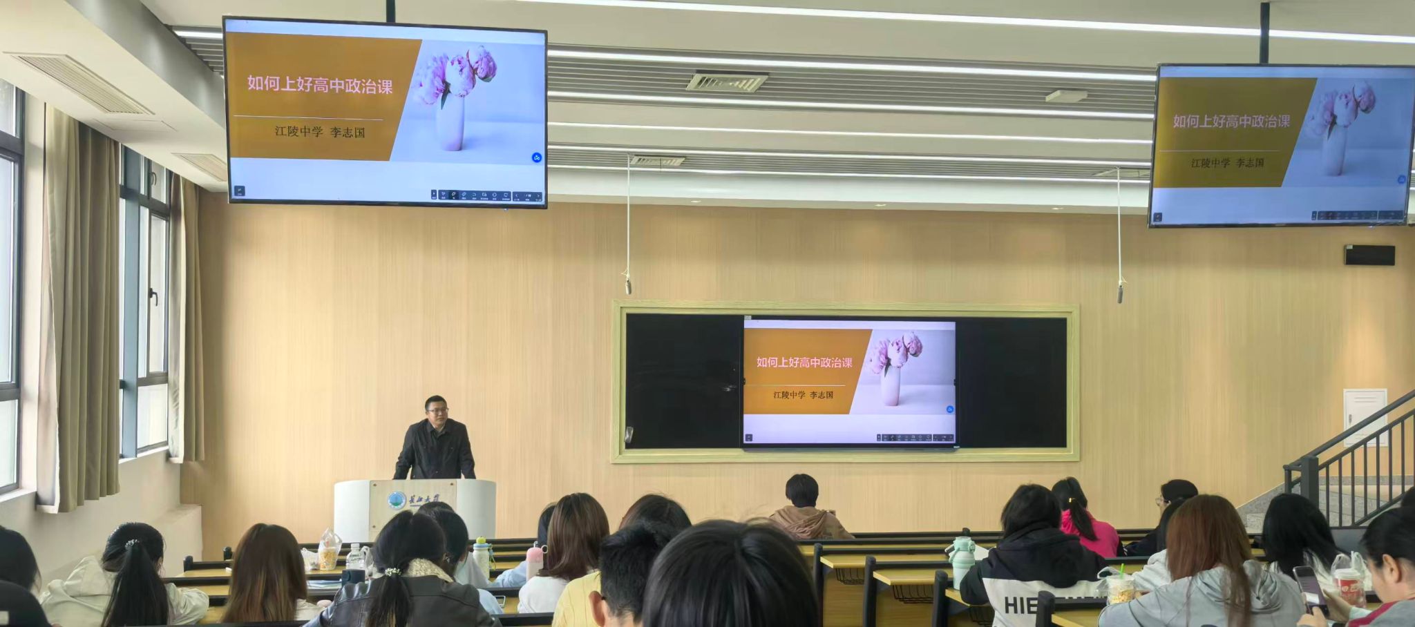 特邀江陵中学李志国老师,作《如何上好高中政治课》专题分享,学院师生到场聆听交流。