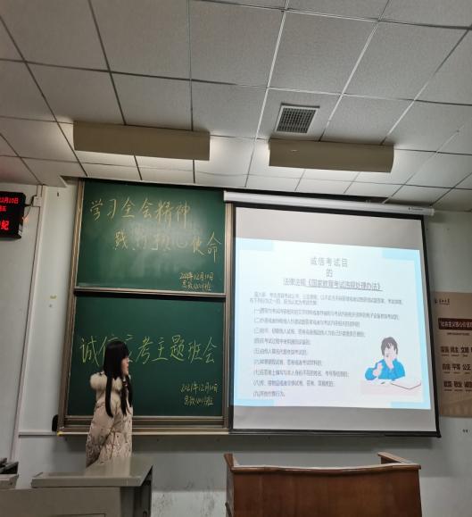 会上,各班班长向同学们传达了与各项考试相关的规章制度,如《国家学校考试违纪处分规定》、《学校考试违纪处理案例》等,并宣读了考试相关条例,详细说明了考试过程中要诚实守信,诚信考试,诚实做人,郑重向同学们发出倡议: