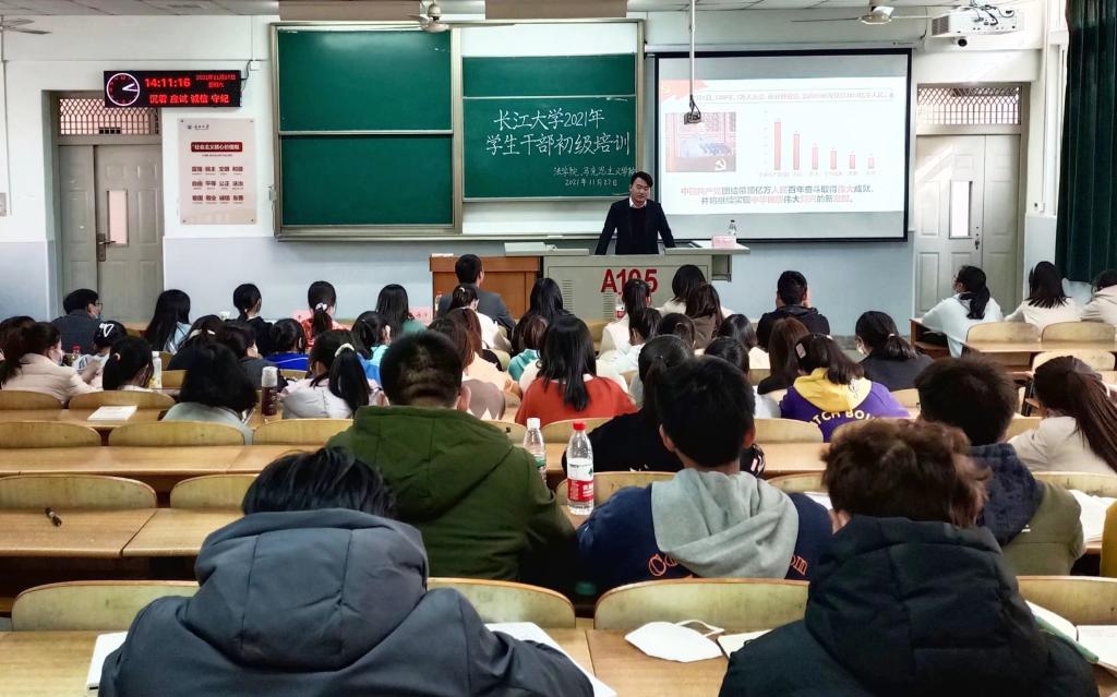 本次培训分为两讲,首先何儒权老师围绕着学习“七一”讲话精神,从把握百年党史、弘扬伟大建党精神、总结历史经验、担当青年责任四方面深刻分析了实现中华民族伟大复兴的历史主题与“四个阶段”历史主线,清晰全面解读了“七一”讲话精神。然后王海洋老师就学生干部应具备的能力和素养展开授课,并强调学生干部角色定位要准、服务意识要强、思想政治素质要红、抗挫能力要硬、提升发展要全、合作意识要强、沟通力求通畅、工作力求完美、活动力求创新、总结力求提升,事前有方案,事中有预案,事后有总结,在工作中砥砺奋进提升自我。