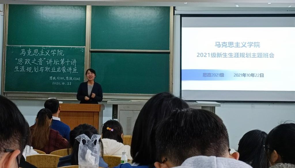 于13教A区303教室召开2021级新生职业生涯规划主题班会,班会由张云雾老师主持,2021级全体本科新生参会。