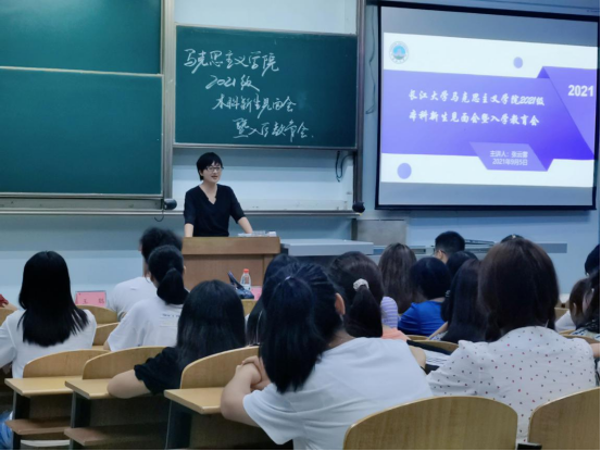 (通讯员:王晓彤 摄影:高思睿、向红)新起点,新希望,新挑战。为引导新生尽快融入大学生活,建设良好的学习、生活秩序,9月5日晚7时,马克思主义学院在13教D525室举行了2021级本科新生见面会暨入学教育会。学院党委副书记马小佼,班主任何波老师、年级辅导员张云雾、李敏老师和全体新生齐聚一堂。
