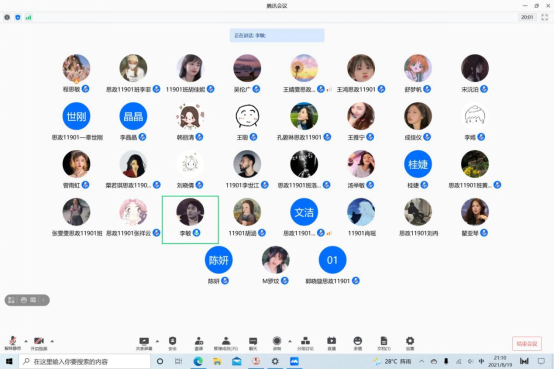 思政11901班于8月19日21:00开展安全教育主题班会,会议邀请了班主任李敏老师参加。