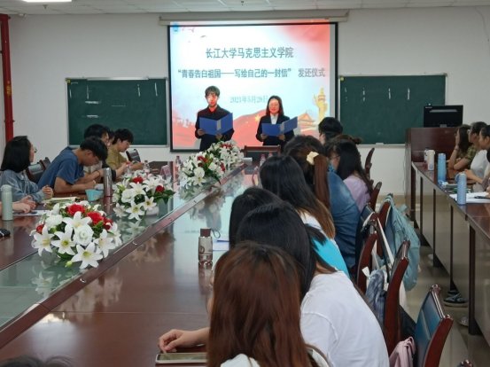 于2021年5月28日在文科楼1104室举行了“青春告白祖国—写给自己的一封信”交还仪式。学院党委书记吴智勇、副书记马小佼、2019级本科生导师代表张志超副教授、辅导员李敏、辅导员张云雾老师以及全体2019本科生参会。