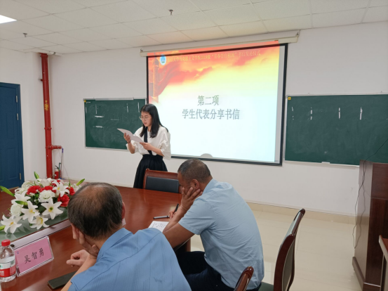 刘博雅、李财、王聪、王婧雯等四位同学也结合书信内容分享他们在长大两年的成长变化,真挚的语言赢得了阵阵掌声。