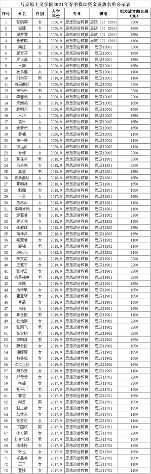 根据年度工作计划,现将a片无码 2021年春季国家助学金发放名单予以公示。