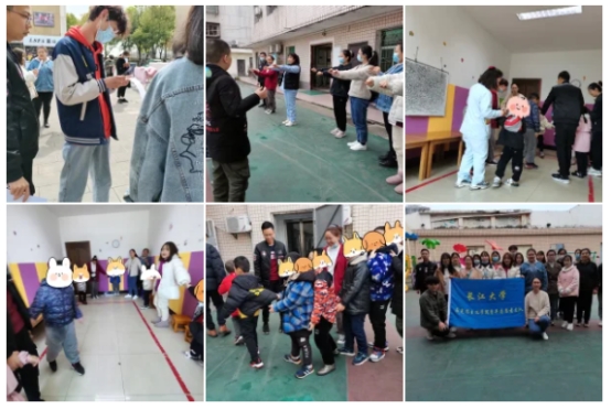 志愿者们在南苑19A宿舍楼下集合完毕,并庄重地在安全责任书上签下自己的姓名。志愿者们于14:20到达荆州自闭症儿童康复中心,并填写自己个人信息后进入康复中心。随后,志愿者们被分为三个小组,进入不同班级,并与小朋友一对一进行玩耍。14:45,是体育课时间,志愿者们在楼下的空地上陪小朋友做操,玩“捉泥鳅”游戏。15:15,老师为小朋友准备了新活动:“吹泡泡”,志愿者们牵着小朋友的手一起进行游戏。志愿者们始终耐心地陪小朋友玩耍,直到安全把他们送到家长身边。16:30,志愿者拍下合影。