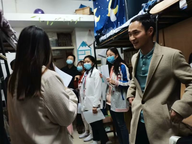 举办了寝室文化节系列活动,其中重要的一项——寝室文化评比活动于11月13日晚7点开始,由学工办主任张云雾老师,年级辅导员李敏老师和20级班主任彭孝光老师带领查寝工作人员前往同学们的寝室。
