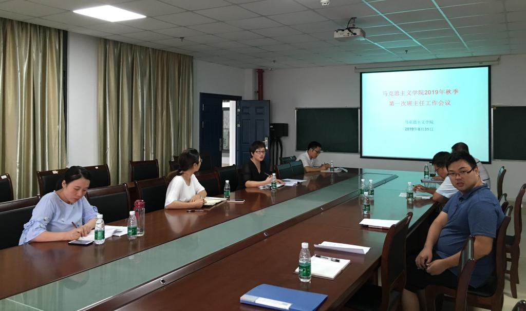 2019年下学期第一次班主任工作例会在文科大楼1104会议室召开,学院党委书记吴智勇、党委副书记马小佼、全体班主任和全体辅导员参加会议。