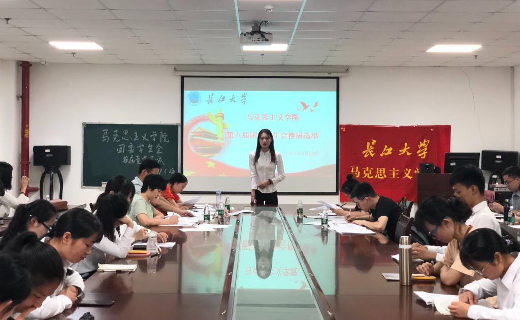 第八届团委学生会换届选举在文科大楼1104举行,学院党委副书记马小佼、全体专兼职辅导员和第七届团委学生会主席团成员担任评委。