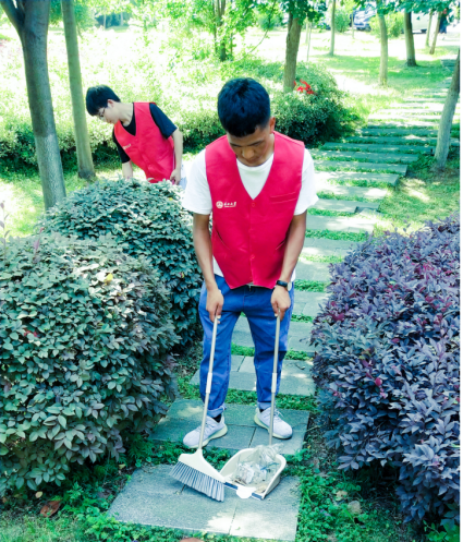 积极响应学校“千人励志爱心行动”,于5月23日下午4点,组织2018级获得国家助学金的学生进行校园公共区域的分片保洁活动。