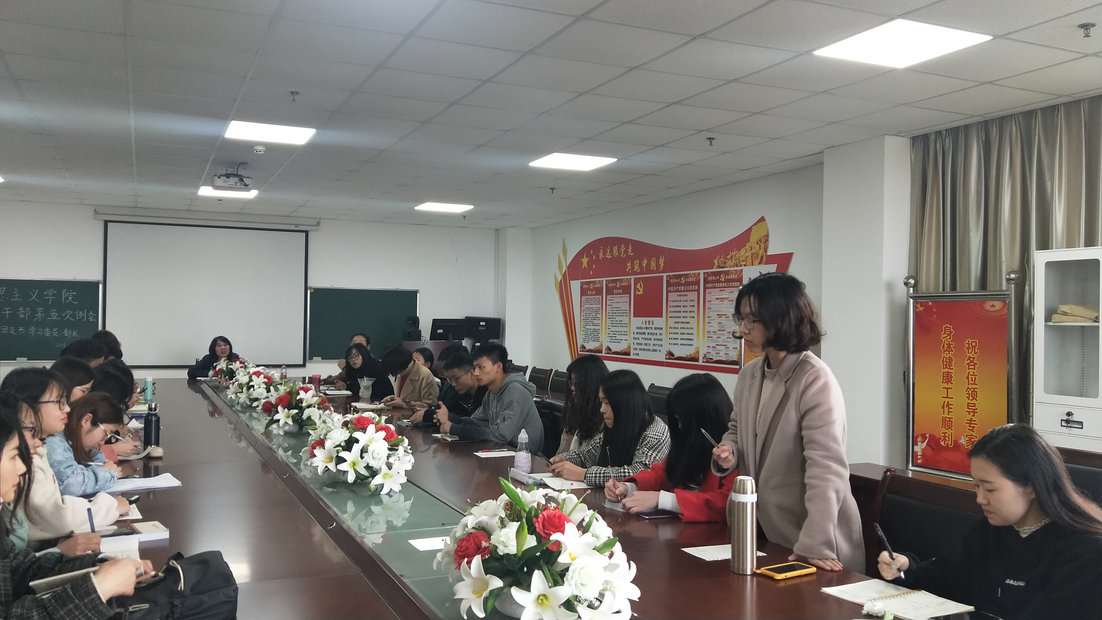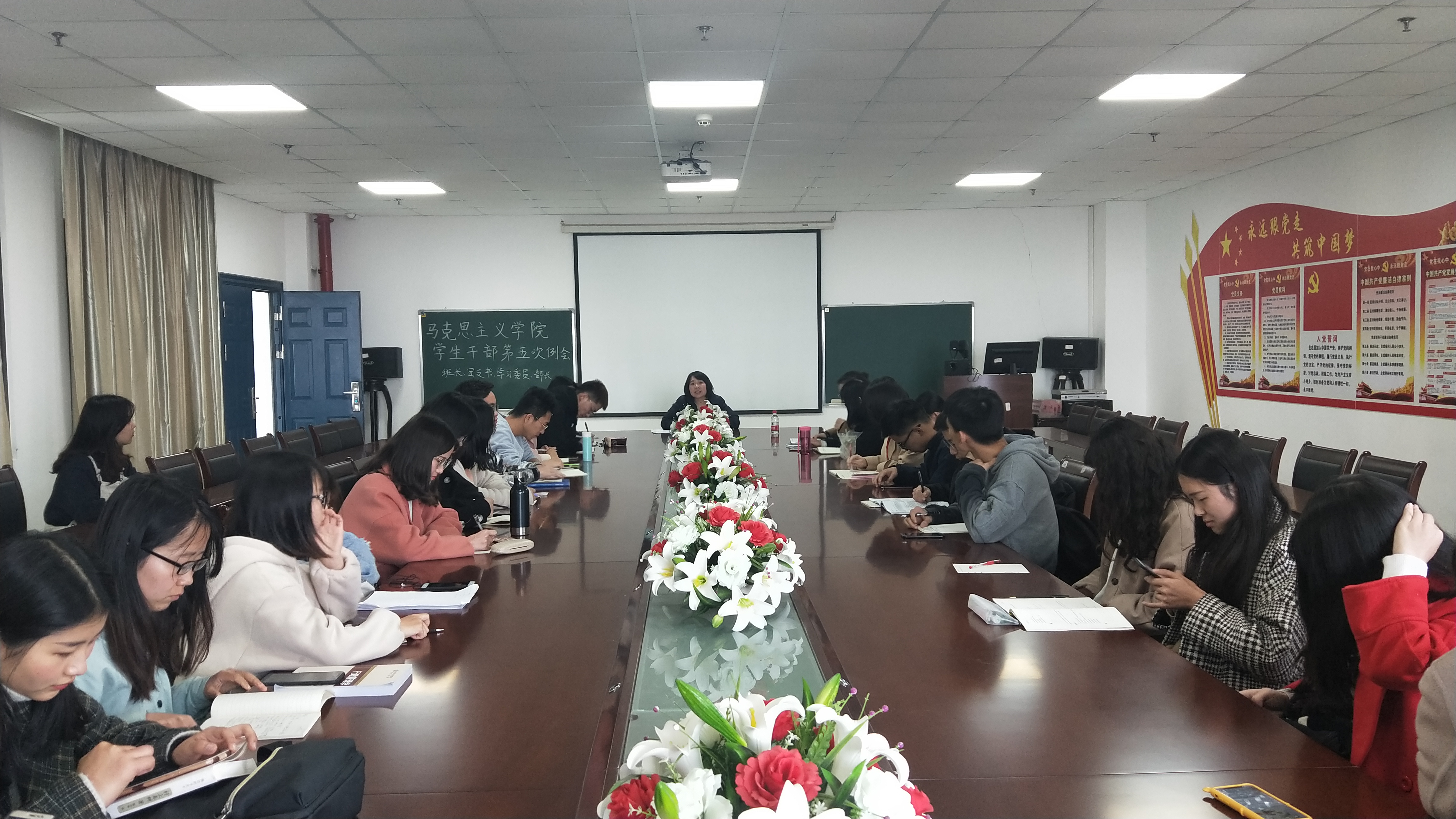 辅导员张云雾老师在文科大楼1104室主持召开了第五次学生干部例会暨学风建设动员大会,出席本次会议的人员有a片无码
