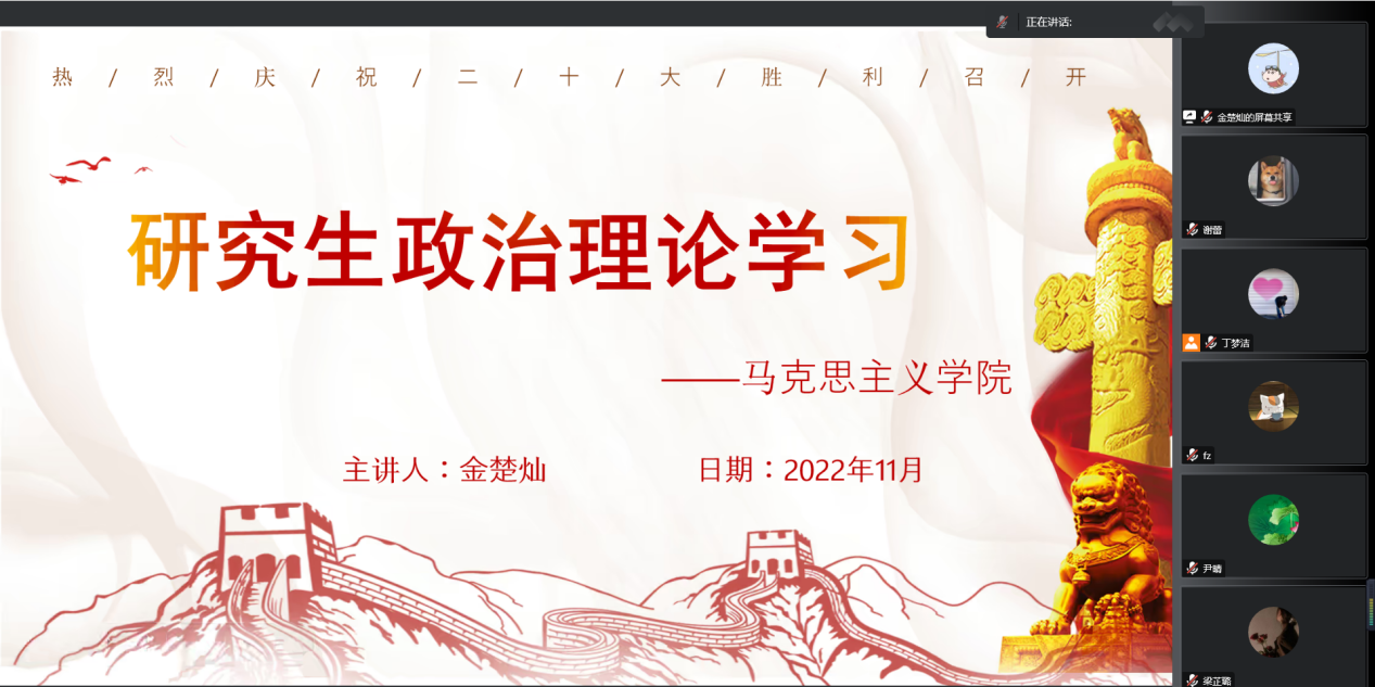 研究生会通过腾讯会议举行了11月份研究生政治理论学习交流会,深入学习贯彻党的二十大精神,加强a片无码