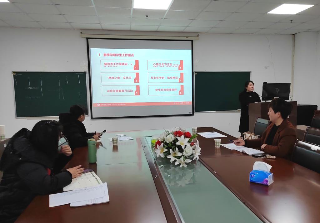 在文科楼1104室召开新学期班主任工作会,部署开学初及本学期重点工作。