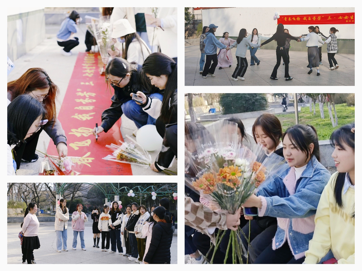 在东校区清晓园举办了“青春飞扬,我自芬芳”女生节趣味活动,辅导员张云雾老师及全院大一、大二女生到场参与活动。