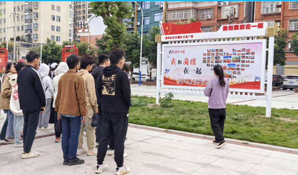 踏入新风社区石榴红文化广场,“可爱的中国”漫画、“我和国旗在一起”合影照片、民族团结故事等引得学生纷纷驻足,大家在交流讨论中增强了对中华优秀传统文化、红色文化、社会主义先进文化和荆楚文化的认同。